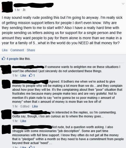 No one likes generalizations.  While I have heard stories of unfaithful missionaries, there are countless others I know personally who gave up great jobs to go on the field, who lived a minimalistic lifestyle, who suffered lack on the field…yet who were faithful.