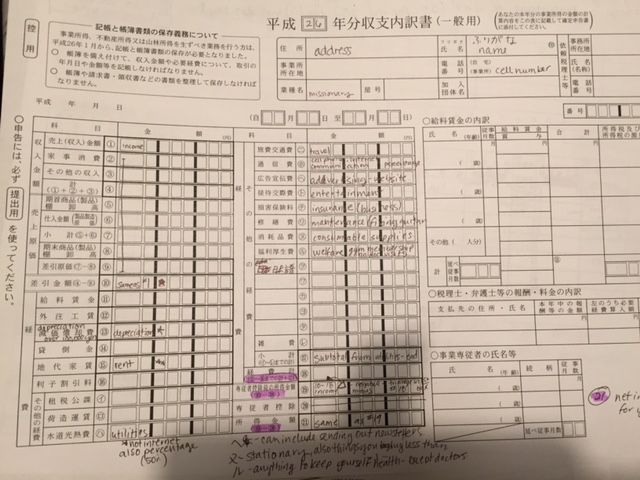 But, bonus points for us: We get to fill out taxes here in Japan too! In Japanese!! Doesn’t that just make you excited? Do you know where to begin? You would probably have the same feelings I have looking at these forms, knowing that you are expected to fill them in: utter confusion, a bit of amusement, and a bit of stress. And you get exactly one month to do your taxes in Japan– February 15-March 15.