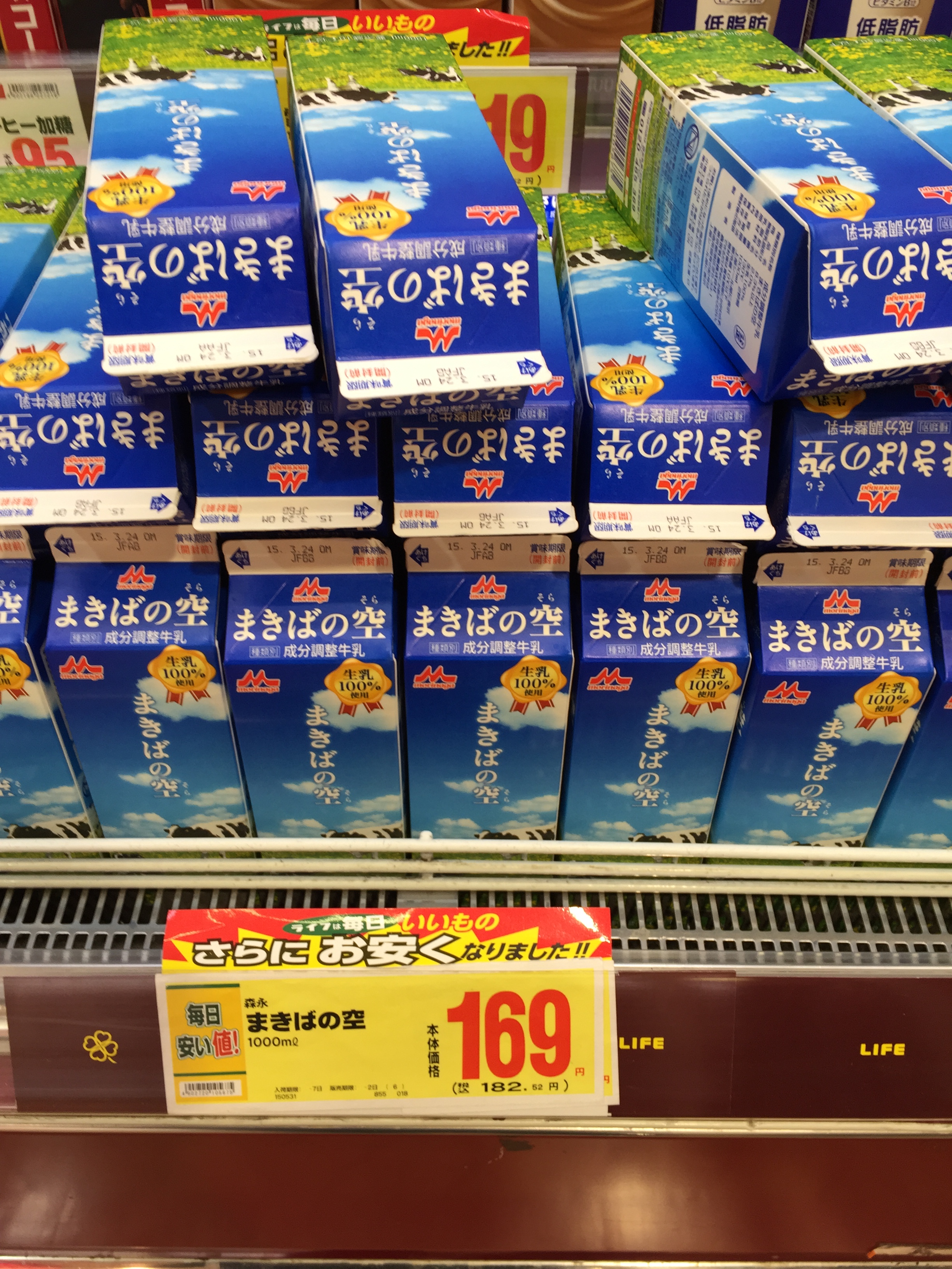 2. The milk says, “Uses 100% fresh milk” and “ingredients-processed” milk. In other words, it’s been messed with or has some additives. Probably added more cream, or took some out, or whatever. They don’t do 1%, 2%, etc. in Japan. Sometimes they enrich it with extra calcium (calcium carbonate, I think), too.